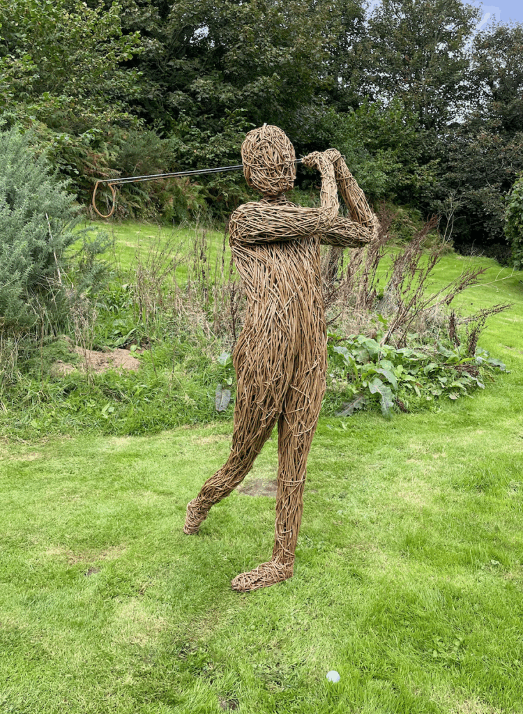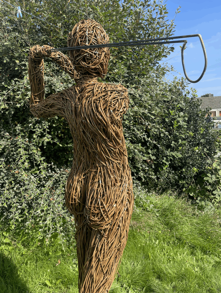 Jasmine has created a variety of private and commercially commissioned willow figures, from archers to dancers, to golfers. She welds a steel framework and then weaves on top to create a long-lasting sculpture.